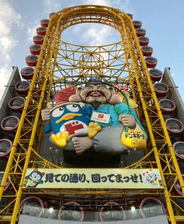 The Ferris wheel is accessible from the Don Quijote Dotonbori and remains open until 10 pm (last entry 9:30 pm).