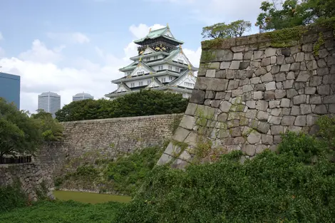 Rodeado de rascacielos y una muralla que le da aspecto de fortaleza, el castillo de Osaka, imponente y majestuoso, vigila la ciudad.