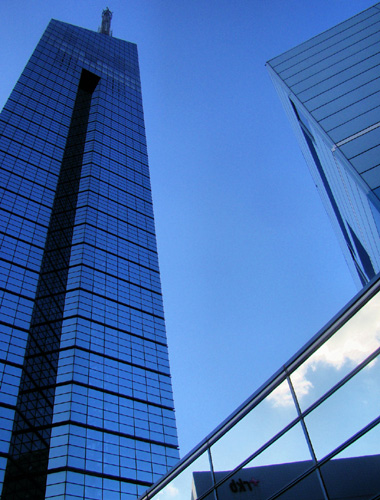 Fukuoka Tower has a triangular cross-section and is coated in mirrored glass. The structure is illuminated at night. At 123 meters is an observation deck with superb 360-degree views out over Fukuoka. Close-by are a number of shops and restaurants and the Robosquare with displays of contemporary robots inside the TNC-TV Bldg. (Update: Robosquare has now closed).