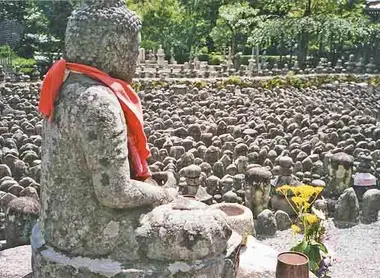 Imagine: 8000 small stone statues for 8,000 abandoned souls. If the temple Adashino Nenbutsu-ji is not among the most beautiful in Kyoto, its field, bristling with more than 8,000 statues, is impressive. Away from the crowds of tourists, perched on a hill at the edge of a bamboo grove, the site and its surroundings reveal a different aspect of the ancient capital.