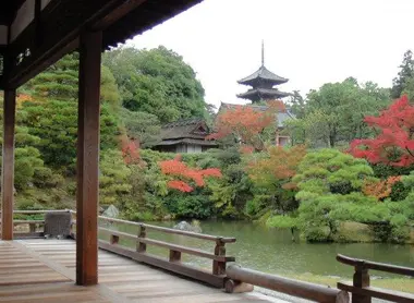 However, the heart of the temple is its main hall and five-story pagoda. Also visit the goten or abbey palace, former residence of the abbots. The whole place is truly elegant, further enhanced by the gardens and artificial ponds of the Edo era. You will also find several tea pavilions there.