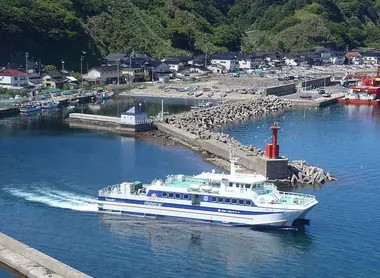 75 min by ferry from Sakata Port (adult ticket price: 4,200 yen; child ticket price: 2,100 yen)