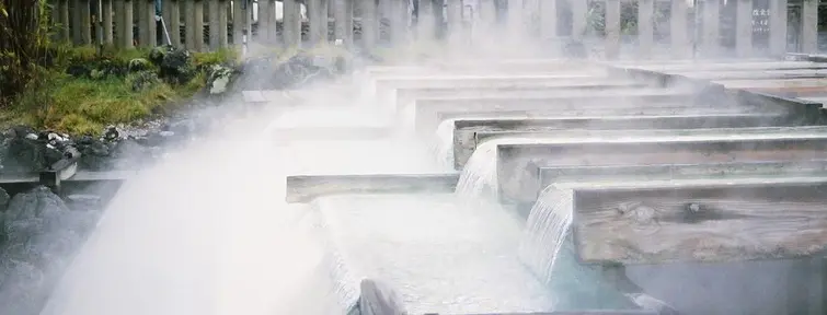 Yubatake ou "champs d'eau chaude" pour refroidir l'eau des sources thermales