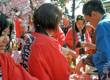 The festival starts every year, on March 15th at 9am, at Tagata shrine. Of course, the religious ceremony is taken very seriously. The parade of giant wooden statues in the streets, which is repeated every year for the occasion, cannot begin until the priests have salted the road to purify the path taken by the bearers. The bearers then parade down the street carrying a wooden phallus weighing almost 400kg. Originally, the statue was much smaller and attached to a representation of a samurai. The Japanese are very open about the subject, and this festival, representing good health and luck for love and fertility, always has a a great atmosphere. Men, women and children alike enjoy the many attractions present. While sake is distributed free of charge during the parade, no fighting or trouble has ever been reported! When the new statue replaces the old one, the latter is recovered by private buyers or companies.