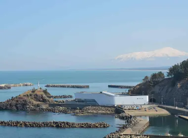 It looks like a long, slender white boat stranded along the beautiful rocky coast of Tsuruoka, northwestern Japan. Kamo Aquarium was completely refurbished in 2014.