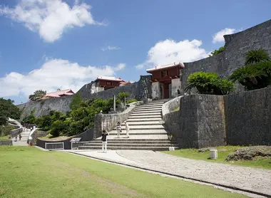 Like many buildings in Okinawa, Shuri Castle was largely destroyed during the Second World War, as a result of a fire. Today, only some of the original structures remain, such as gusuku (fortress) walls made of limestone blocks.