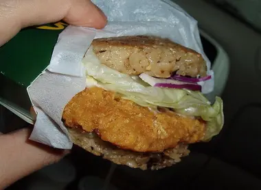 - A seasonal menu: comprising of a Japanese omelette, miso soup (which would take a lifetime to discover all variants!), grilled rice balls, pork with ginger and accompanied by fresh shiso leaves. The end result is surprising: a rice burger!