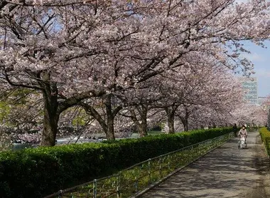 A bike path runs through the full length and extends to the north of Osaka. Going up the park along the river, you can reach the Osaka Mint Museum.