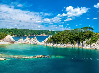 Located on the coast of Miyako, in the middle of the Michinoku Coastal Trail, this beach is one of the most beautiful on the main island, and indeed in the whole of Japan! Its mythical landscape of clear azure water and towering white rock formations makes this beach a must-see stop on the trail! Listed as one of Japan's 100 beaches and bathing places, Jodoga-hama beach is a splendid spot surrounded by pine trees. You can even go kayaking, or take a boat trip!