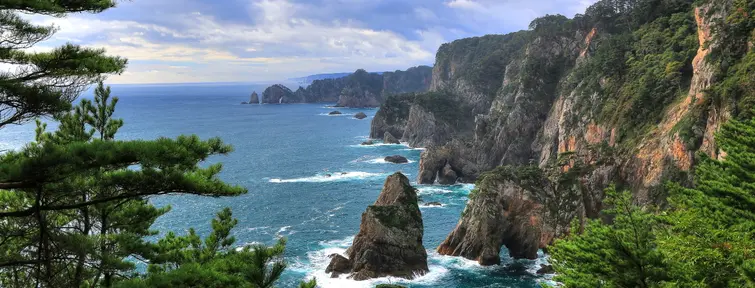 The Kitayamazaki Cliffs are one of the most emblematic spots on the Michinoku Coastal Trail. Also known as the "Alps of the Ocean", these 200-metre-high cliffs offer spectacular views of the ocean and rock formations cloaked in vegetation. There are several viewpoints along the trail from which to admire this breathtaking landscape. The cliffs stretch over 8 km of the archipelago's east coast, and are part of Sanriku Fukko National Park.