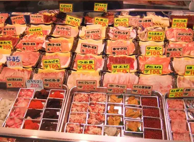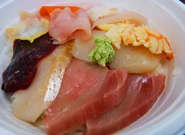 An unfortunate traveler who only had enough money to pay for a bowl of rice gave birth to a fun tradition that still exists in this market. A kind fishmonger generously offered him some pieces of fish to top his rice, and the katte-don was born! (katte meaning "as you like", or "free choice")