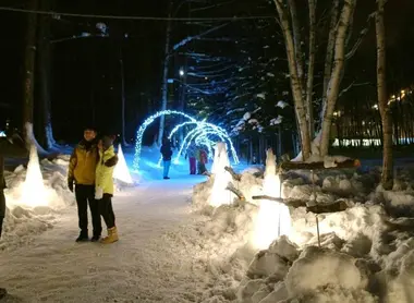 The Kan Kan Mura, located in front of the New Furano Prince Hotel, is actually a miniature igloo village consisting of a café, a dome, a 200-meter toboggan run, and numerous illuminated snow sculptures. Also.