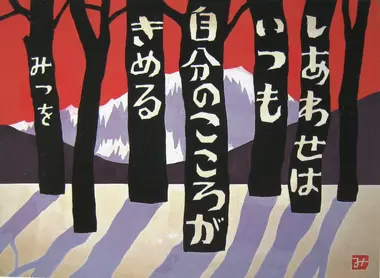 Poet and calligrapher Mitsuo Aida lived from 1924 to 1991. His work is contemporary, but in the tradition of the great calligraphers and Zen Buddhism. For Aida, his work was a spiritual and artistic journey between the modern and more traditional.