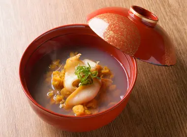 Ichigo ni is a traditional Aomori dish. It's a sea urchin and awabi (abalone) soup, and is a luxury dish for special occasions.