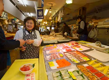 Of course, all the seafood in Aomori is good and fresh. At Aomori Gyosai Center market, you can enjoy a nokke don. This is a dish where you first buy a bowl of rice, and then you can choose your desired toppings, including raw fish, directly at the market stalls.