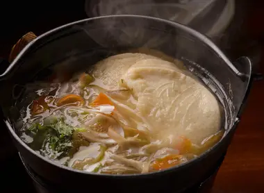 Senbei jiru is a homely dish of the region. It's a vegetable soup with Nambu senbei (rice crackers).