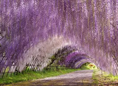 This is a place dedicated to the glory of wisteria. In clusters around the city, twenty varieties of this flower cover nearly 1,000 square meters of Kawachi city (Fukuoka Prefecture).