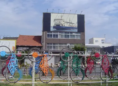 Atsushi Ozawa is an artist who works with iron, and his work "Memory of ship's hull" is on display, an anchor of the Japanese Imperial Navy (1872-1947) reconstituted by recovering abandoned materials in Tamano. In 2016, he recovered all the abandoned bicycles in Tamano he could find, then heated, hammered, and welded the metal to create new bicycles. These unique bicycles can now be rented by tourists to explore the town.