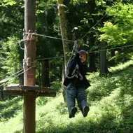 "Tauchen Sie in diesem Kletterpark vollständig in diesen wunderschönen und in Japan einzigartigen Wald ein! Der Park verfügt über 30 Elemente für Erwachsene, darunter Seilbahnen, Hängebrücken und andere Einrichtungen.