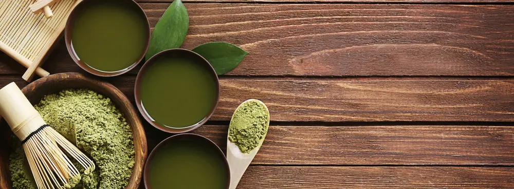 - Matcha (抹茶), der wohl berühmteste japanische Tee, wird durch Mahlen spezieller, schattierter Teeblätter zu einem feinen, farbenprächtigen Pulver verarbeitet, das mit Wasser vermischt wird, wodurch es ein dickeres Mundgefühl und einen erdigen Geschmack erhält.