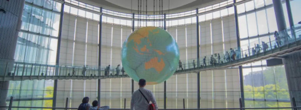 Miraikan bedeutet auf Japanisch "Pavillon der Zukunft" . Am Eingang, schwebend zwischen dem Erdgeschoss und dem zweiten Stock, thront ein riesiger Globus, auf dem man die klimatischen Schwankungen und die menschlichen Bewegungen auf unserem Planeten sehen kann. Auf diese Weise wird man direkt in die richtige Stimmung versetzt. Auf seinen 5 Etagen präsentiert das Museum Ausstellungen zu den Themen Wissenschaft, Zukunft, Erde, Universum, menschlicher Körper , etc... auf spielerische, interaktive und oft visuell beeindruckende Weise.