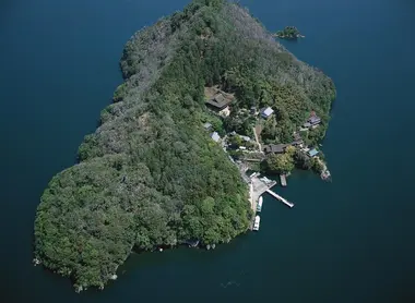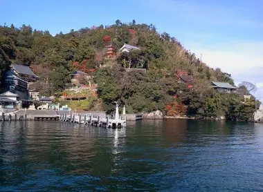 Die Insel Chikubu, in der Mitte des Biwa - Sees, liegt im Herzen von Japan. Der Ort ist nur 2 km 2 groß und in seiner Länge leicht zu Fuß zu durchqueren. Man kann es mit dem Boot von Nagahama in der Präfektur Shiga erreichen.