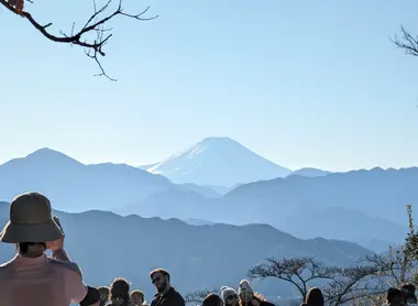 Der Gipfel des Berges Takao ist einer der besten Spots, um den Fuji von Tokio aus zu bewundern. Der Vulkan ist von anderen Bergketten umgeben, wodurch sich eine ganz andere Landschaft ergibt, als die, die man normalerweise vom Kawaguchi-See oder vom Ashi-See aus zu sehen bekommt! Der Berg Takao ist von Shinjuku aus mit dem Zug 1 Stunde vom Zentrum Tokios entfernt. Nehmen Sie die Keio-Linie und dann die Takao-Linie und steigen Sie an der Station Takaosanguchi aus. Von dort aus bringt Sie eine Seilbahn zu den Höhen des Berges, von wo aus mehrere Wanderwege starten.