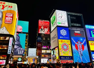Osaka: Burg von Osaka, Kayukan-Aquarium, Stadtteil Dotonburi.