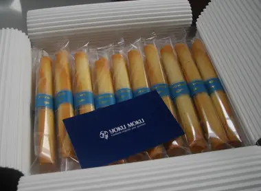 Shiroi Koibito, wörtlich "weißer Liebhaber", ist eine der meistgekauften Omiyage in Japan. Es handelt sich dabei um zwei mit weißer Schokolade gefüllte Katzenzungen, die von der japanischen Backwarenmarke Ishiya hergestellt werden. Die Boxen, in denen die Kuchen präsentiert werden, sind nicht nur sehr lecker, sondern auch hübsche, wiederverwendbare blau-weiße Blechdosen. Auf dem Deckel ist ein wunderschönes Foto der Vulkaninsel Rishiri zu sehen. Die Shiroi Koibito stammen aus Hokkaido und während sie anfangs nur auf ihrer Heimatinsel erhältlich waren, kann man diese Kuchen nun überall auf dem Archipel kaufen!