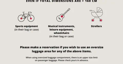 Ab 2020 gelten neue Regelungen für Reisende mit Übergepäck (Gepäckstücke mit Gesamtmaßen zwischen 161 cm und 250 cm).