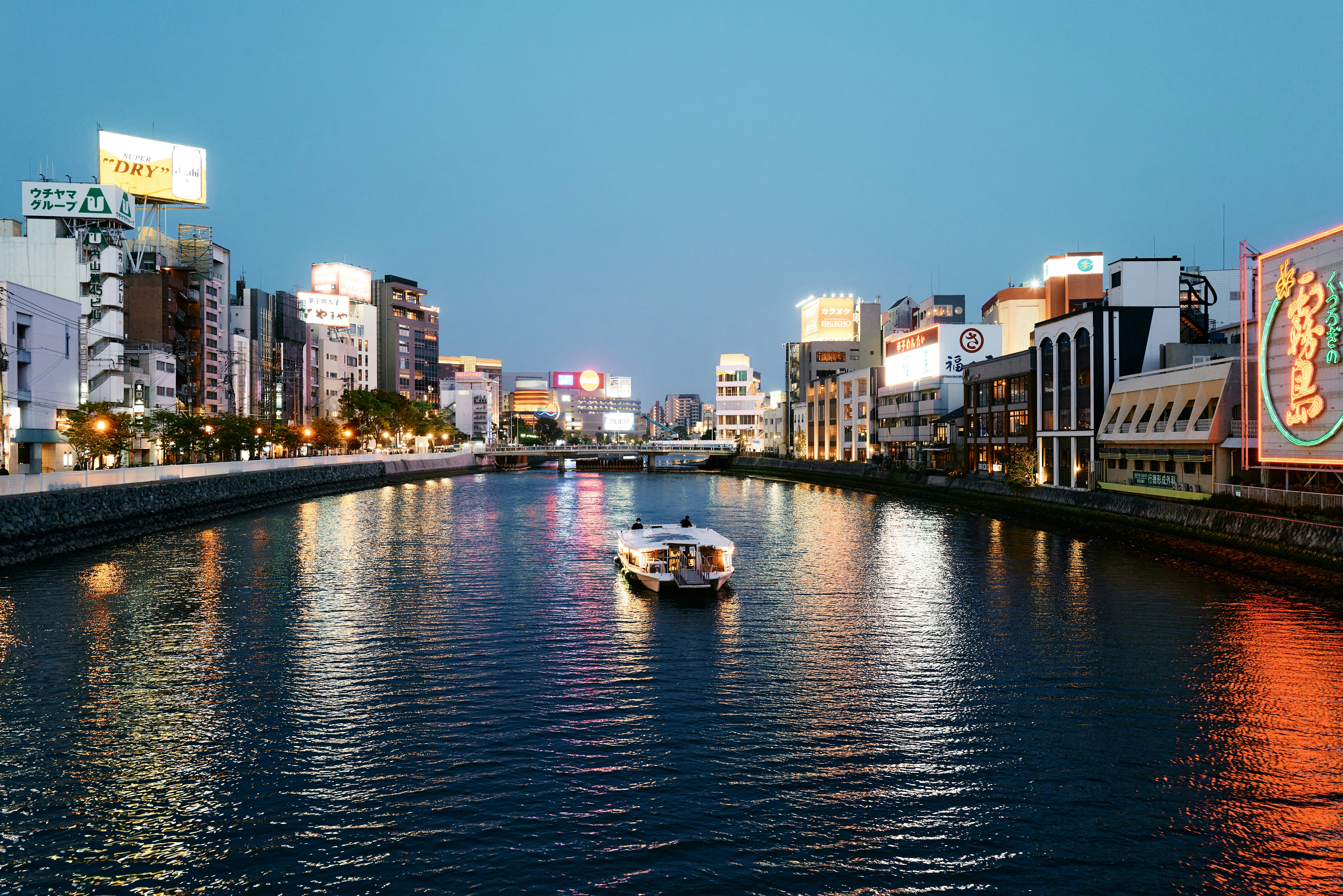 Am Abend besuchen Sie die lebhaften Viertel Nakasu und Tenjin mit ihren Hunderten von köstlichen und einladenden Straßenrestaurants, die als „Yatai” bekannt sind und günstige Preise bieten.