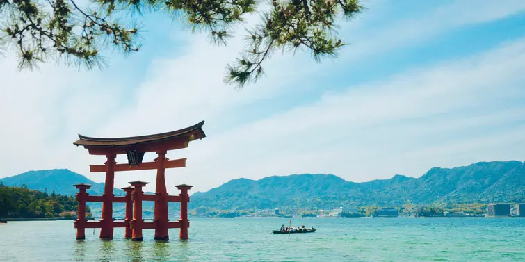 Es ist Zeit, die Insel zu erkunden! Der Itsukushima-jinja-Schrein und sein großes Torii-Tor, das im Meer steht, sind ein Muss.