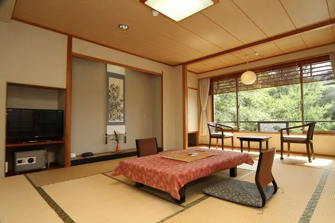 Im Ryôkan genießen Sie ein köstliches traditionelles japanisches Abendessen, bevor Sie sich in Ihr Tatami-Zimmer zurückziehen.