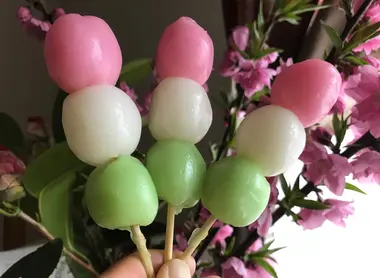 Hanami dango: un pincho con flores para comer en la calle