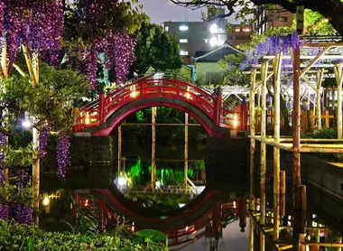 El grabado que representa el Kameido Tenjin con su famoso puente, es una de los más conocidas de la serie, y fue particularmente apreciado por los artistas impresionistas en Europa; sin embargo, este templo es completamente desconocido para muchos turistas. No dudes en visitarlo entre finales de abril y principios de mayo para admirar la época de la glicinia en flor.