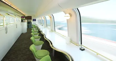 ● Viaje disfrutando de una comodidad excepcional desde Kioto a Iseshi, la puerta de entrada al Gran Santuario de Ise, con asientos espaciosos, interiores refinados y un ambiente tranquilo y relajante.