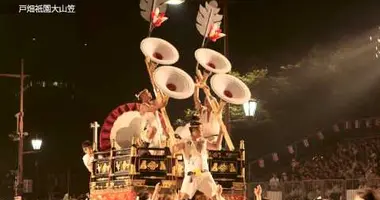 Tout commelors du Kurosaki Gion Yamakasa, des porteurs manipulent avec force etdextérité ces véritables petites montagnes qui s'illuminent ensoirée. Ils parviennent même à les faire pivoter à grande vitesseexécutant ainsi une véritable chorégraphie. À voir les yamakasavirevolter ainsi, on en oublierait presque que chaque char pèse unetonne ! Quant aux chars du Tobata Gion Oyamakasa, ilsapparaissent drapés de tissus brodés d'or et d'argent et décorésde fleurs de chrysanthème la journée et opèrent leurtransformation à la nuit tombée. Tissus et fleurs sont remplacéspar 309 lanternes en papier disposées sur douze niveaux. Leslanternes sont assemblées progressivement pour devenir de grandespyramides de lumières ! Des dizaines d'hommes supportent cespyramides atteignant les dix mètres.