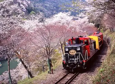 À l’origine la ligne faisait partie des lignes Japan Railways et reliaitdepuis 1899 Arashiyama à l’ancienne province de Tamba. Doublée par une ligneplus moderne en 1989, elle est devenue depuis 1990 une ligne touristique jouantde son côté suranné. La locomotive diesel et ses wagons fleurent bon les débutsde l’ère Shôwa même s’ils resplendissent de couleurs neuves et brillantes.