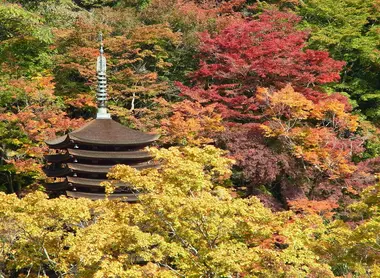 Son imposante pagode et son sanctuairevermillon se détachant sur le vert des forêts environnantes lui a valu lesurnom de "Nikko du Kansai". Il est encore plusapprécié à l’automne, lorsque les feuillages virent au jaune ou au rouge, s’harmonisant avec l’ensembledes bâtiments.