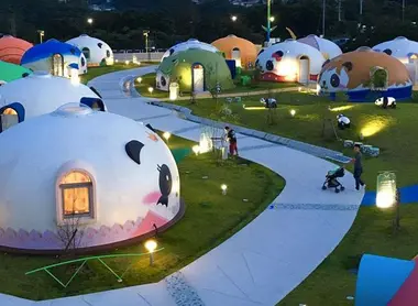 Si vous êtes fan de kawaii, le camping “Panda Village” risque bien de vous faire perdre la tête. Dédié à ce gros animal blanc et noir, il est composé de nombreux bungalows en forme de panda géant. Lorsque l’on en franchit les portes, on se retrouve donc nez à nez avec des petites bulles multicolores, avec des grands yeux rieurs.