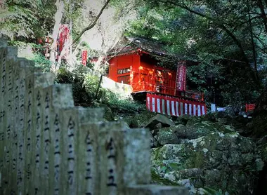 Le temple fut érigé en 661 par un ascète du nom d’En-no-gyoja, de la secte ésotériqueShingon. Le temple abrite une statue de Fudo-Myoo, divinité bouddhique.Ici, Fudo-Myoo est incarné par un dragons’enroulant autour d’une épée. Le temple est dédié à ce dragon censé apporterla chance et exaucer les vœux. Très peu de touristes, mais de fervents croyants, viennent y prier.