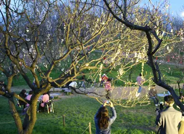 Le parc est en effet occupé par environ 1 200pruniers, de variétés produisant des fleurs blanches et d'autres rouges. Près de 100 000 personnes viennent chaque annéelors de leur floraison pour les admirer et profiter de leurs couleurs, mise en valeur par le contraste avec les immenses pelousesvertes du parc.