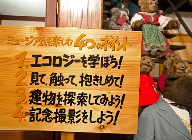 Le village écologique des ours en peluche est situé dans les montagnes d'Hida, à côté de Hida-no-Sato, dans la préfecture de Gifu. C'est un musée bien singulier installé dans une maison du style traditionnel d’Hida vieille de 180 ans et appelée gasshô zukuri. On peut trouver des demeures similaires à Shirakawa go.
