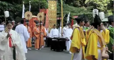 C'est au Hie-jinja, le sanctuaire auquel il est attaché, que le festival prend tout sonintérêt. Des présentations d'ikebana, l'art de la composition florale,embaument l'air. Des stands proposant des dégustations diverses fleurissent auxquatre coins du parc. Le temps suspend son vol.