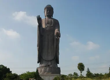 C’est au coeur du parc Ushiku Arcadia que trône cette impressionnante sculpture de bronze. Emplacement choisi en hommage au moine Bodhisattva Dharmakara qui a atteint, en cet endroit, après une longue période d’introspection, l’illumination, avant de devenir Bouddha Amitābha.