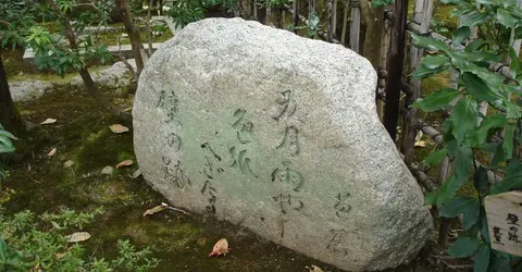 Une pierre gravée d'un haïku au Rakushisha à Arashiyama