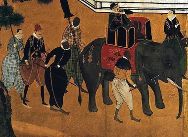 Le premier des trois grands unificateurs du Japon est fasciné par ce grand homme à la peau sombre, couleur qui se maintient même après qu'il ait ordonné qu'on lui fasse prendre un bain.