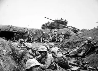 Avant d’être une bataille, Iwo Jima est une petite île japonaise, située dans l’archipel d’Ogasawara, à 1 000 km au sud de Tokyo. C’est sur ce petit bout de terre de seulement 21km2 que s’est déroulée, entre février et mars 1945, une bataille terrestre opposant l’armée impériale japonaise, présente sur l’île et l’armée américaine. Si les États-Unis sont sortis vainqueur de cette bataille en conquérant Iwo Jima, c’est la seule bataille terrestre de la guerre du Pacifique où les États-Unis ont vu plus de leurs soldats que de soldats Japonais mis hors de combat.