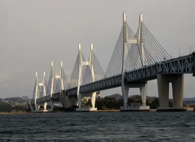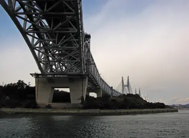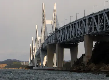 Ce grand pont du Seto Ôhashi est en fait constitué de plusieurs petits ponts : dix exactement ! Ils ont chacun leurs particularités car il y a des ponts suspendus, des ponts à haubans, en treillis et à poutres. On ne les remarque pas lorsqu’on est à bord d’un train, car ils sont dissimulés par le tablier routier. Les ponts traversent cinq îles sur 13,1 kilomètres. La voie ferrée, autorisant une vitesse maximum de 130 km/h, pourrait un jour accueillir une voie de shinkansen. Ce projet était prévu dès le départ, même si les chances de voir le shinkansen arriver à Shikoku sont, à l'heure actuelle, minces. Des balades en bateau sont proposées depuis le port de Kojima, pour vous permettre de découvrir les ponts depuis la baie. Il est assez impressionnant de passer en-dessous, mais la vue entre les jolis îlots en vaut vraiment la peine ! Vous pourrez également y croiser des bateaux de pêcheurs.