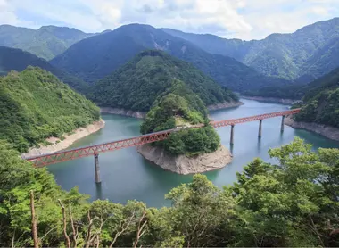 Dans le centre du Tohoku, ce train au milieu des montagnes longe la rivière Tadami et permet d’admirer les gorges qui l’entourent.